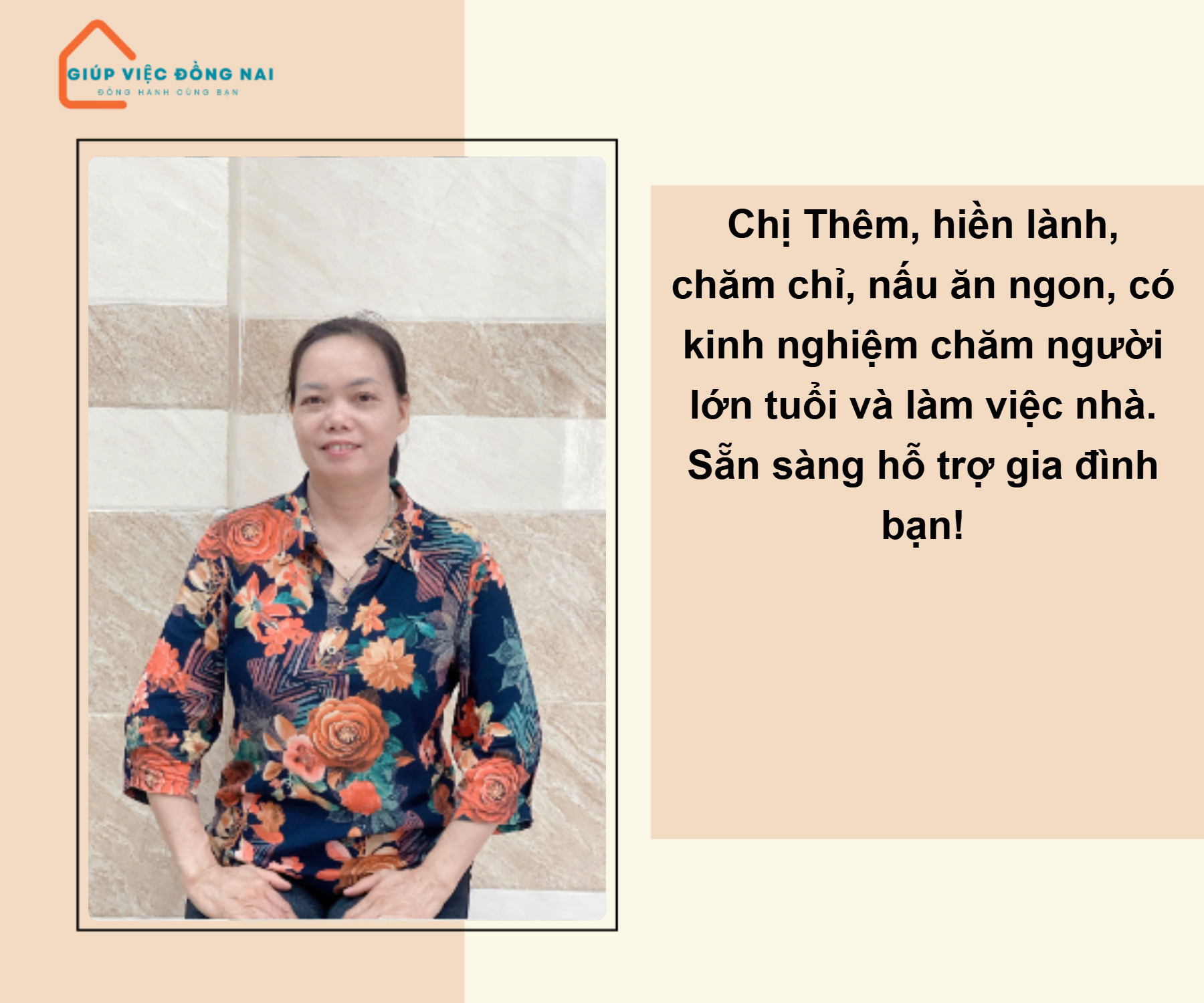 + Chị hiền lành, thật thà chất phát, có việc phù hợp cô nhận việc ngay, không kén chọn việc.