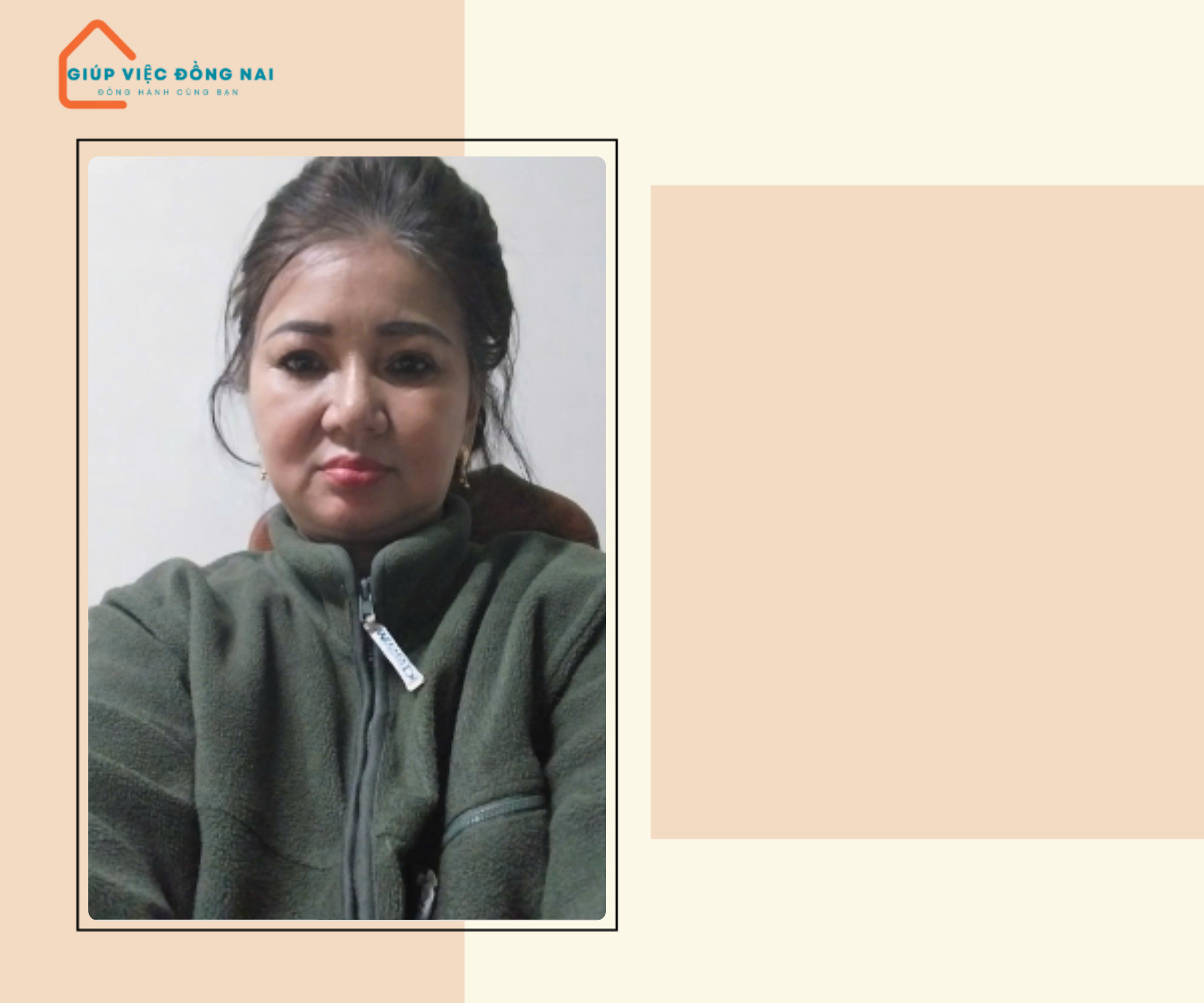 + Tính tình cô là người giản dị, chân chất, thái độ công việc tốt, hiền lành hiểu chuyện, việc nhà cửa nấu ăn dọn dẹp cô có thể phụ làm được.
