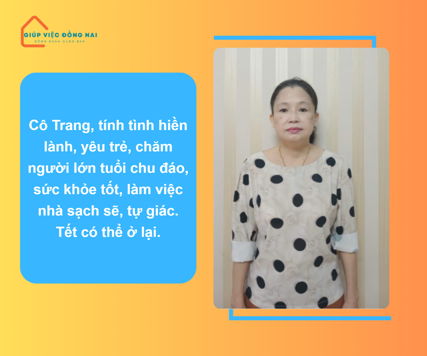 Dịch vụ giới thiệu người giúp việc – uy tín, rõ ràng. Tìm người hỗ trợ việc nhà phù hợp với gia đình bạn? Chúng tôi kết nối người giúp việc tận tâm, có kinh nghiệm và các gia đình có nhu cầu. Liên hệ 0976.899.083 để được tư vấn!