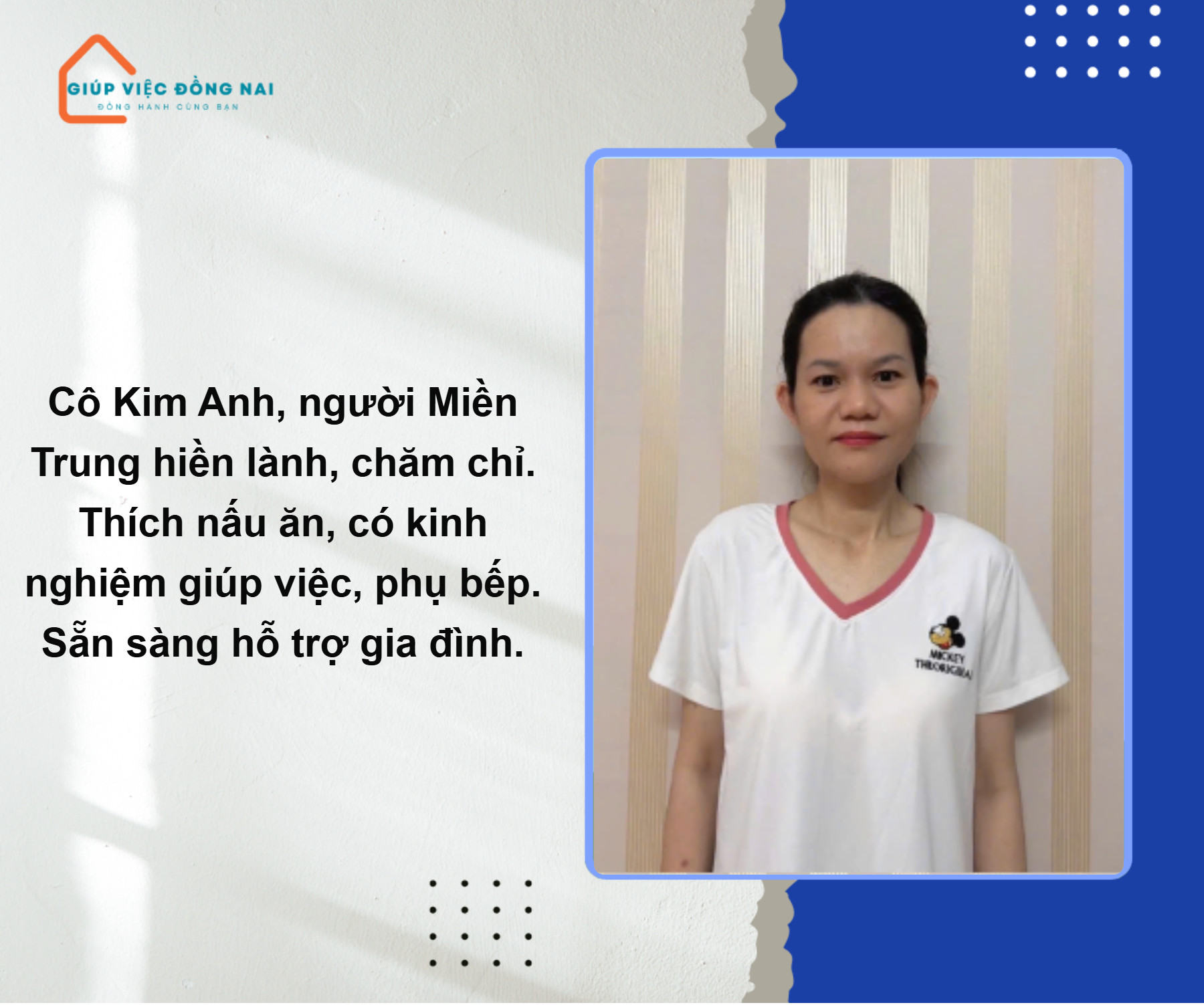 + Chị hiền lành, vói chuyện nhỏ nhẹ, biết cách làm hài lòng chủ.