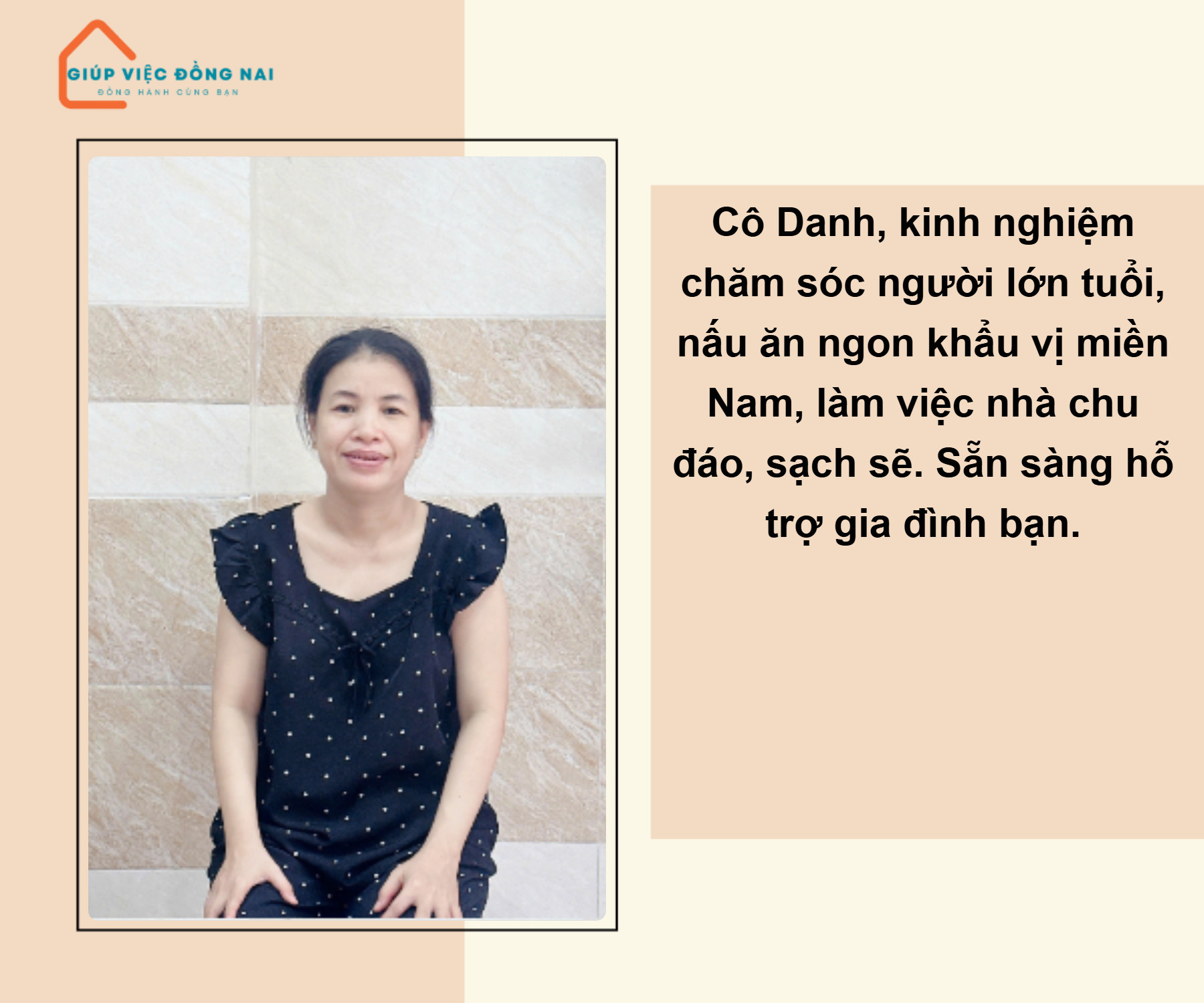 + Chị nấu ăn ngon theo khẩu vị miền Nam , có thể thay đổi theo sở thích gia đình.