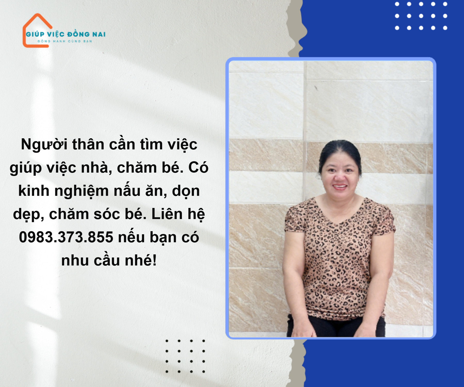 • Ngành nghề:Giúp việc nhà